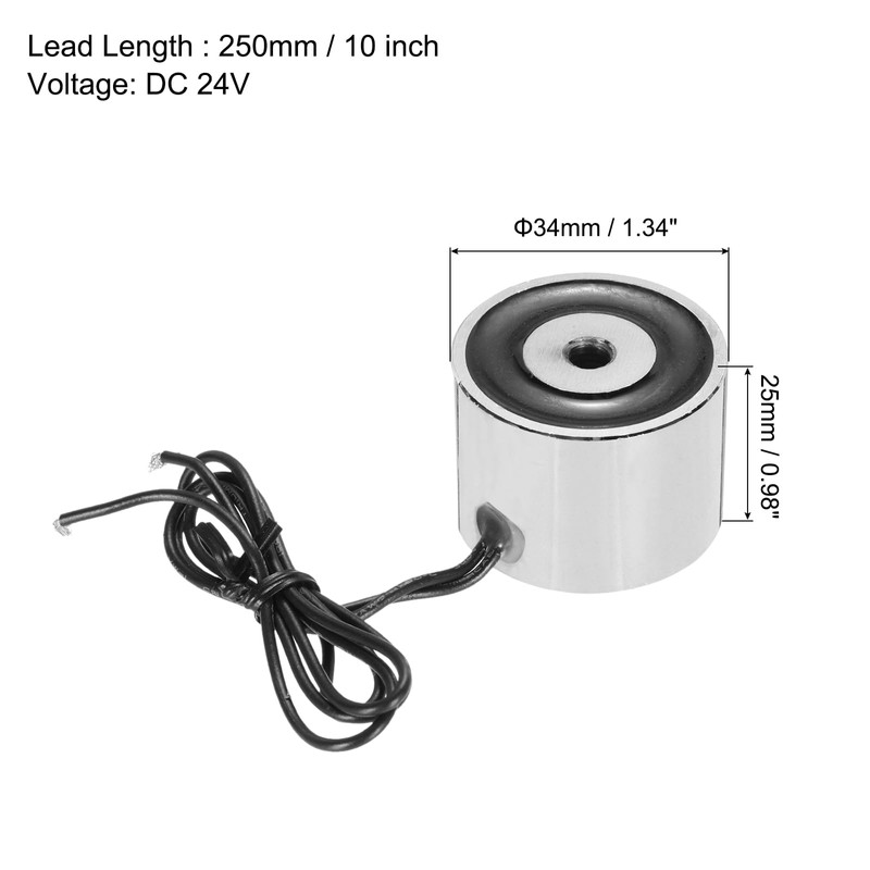 - 【Holding Electromagnet Parameters】- Voltage: DC 24V; Power: 8.2W; Force: 25kg; Mounting thread specifications: M6