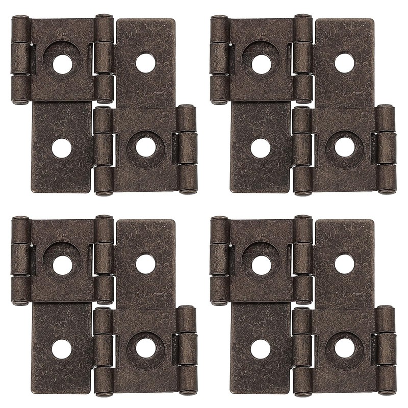 - Specification: Item: Double Acting Hinges; Material: Iron; Color: Red Bronze; Unfolded Size: 47x47x1mm/1.85x1.85x0.04inch (LxWxT) Mounting Hole Diameter: 4.7mm/0.19inch Folding Size:47 x 27 /1.85" x 1.06" (L*W) Shaft Thickness: 5mm/0.2inch; Package Includes: 4Pcs x Double Acting Hinges