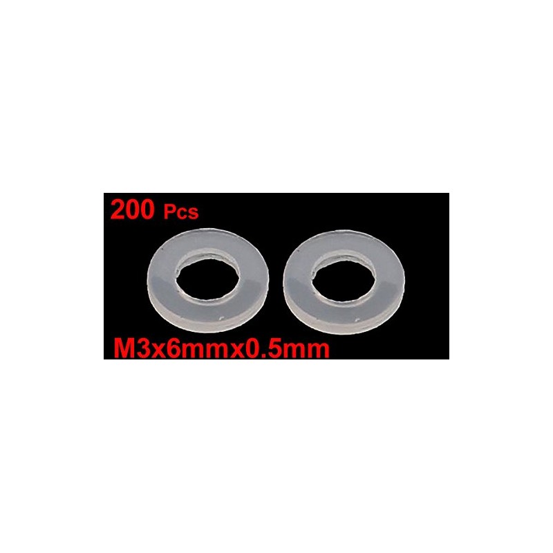 uxcell Flat Washer Sealing Gasket Nylon M3 0.2 inch (6 mm) Outer Diameter 0.02 inch (3 mm) Inner Diameter 0.02 inch (0.5 mm) Thickness for Faucet Pipe Water Hose, Clear, Pack of 200