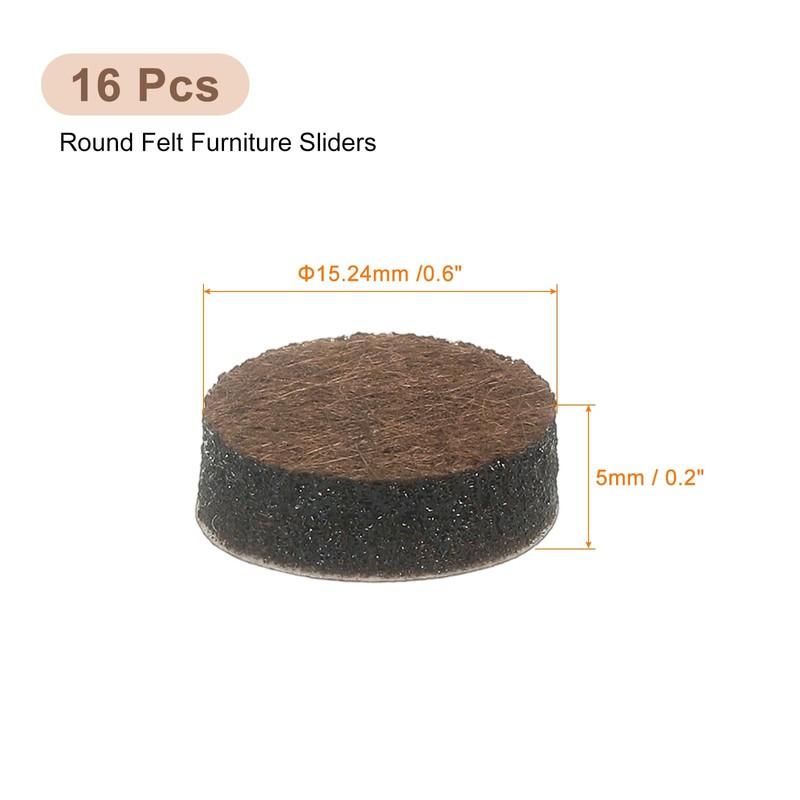 uxcell Furniture Pads, 16Pcs 0.6" - Round Self Adhesive Felt Furniture Pads, Floor Protectors for Furniture Feet Chairs Legs Hardwood Floors (Brown)