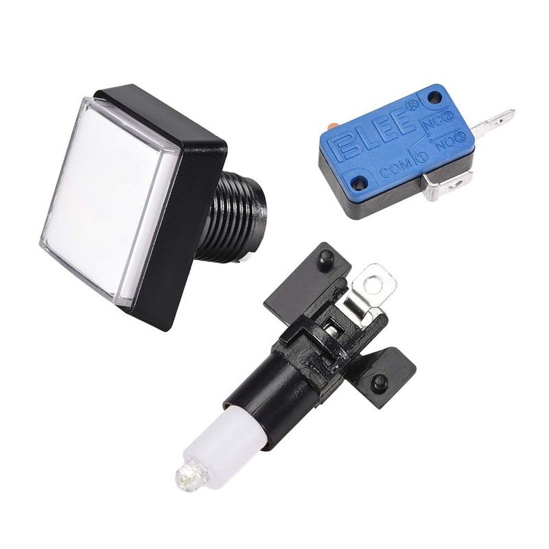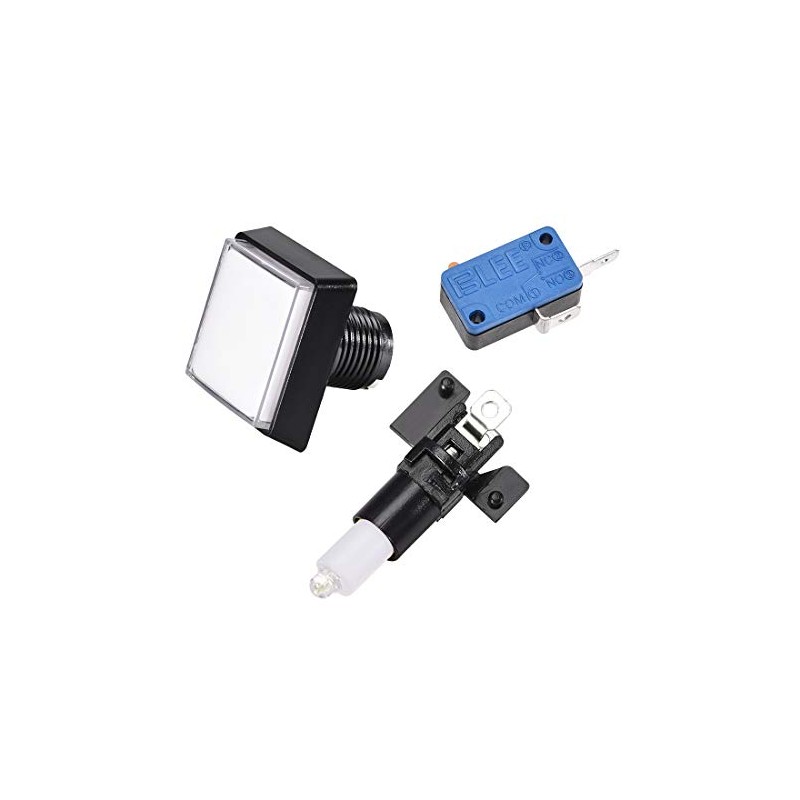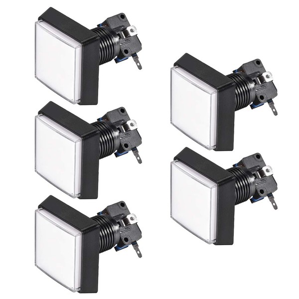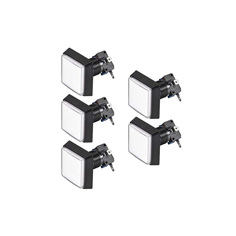 uxcell Game Push Button 50x50 Square 12V LED Illuminated Push Button Switch with Micro switch for Arcade Video Games White 5pcs