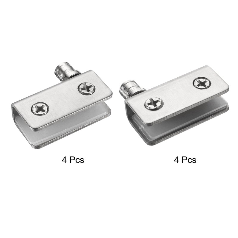 uxcell Glass Door Hinge, 8Pcs - Stainless Steel Pivot Hinges Clamp, Cabinet Hinge Clip Replacement Kit for Cupboard Showcase Glass Door Swinging (Silver)