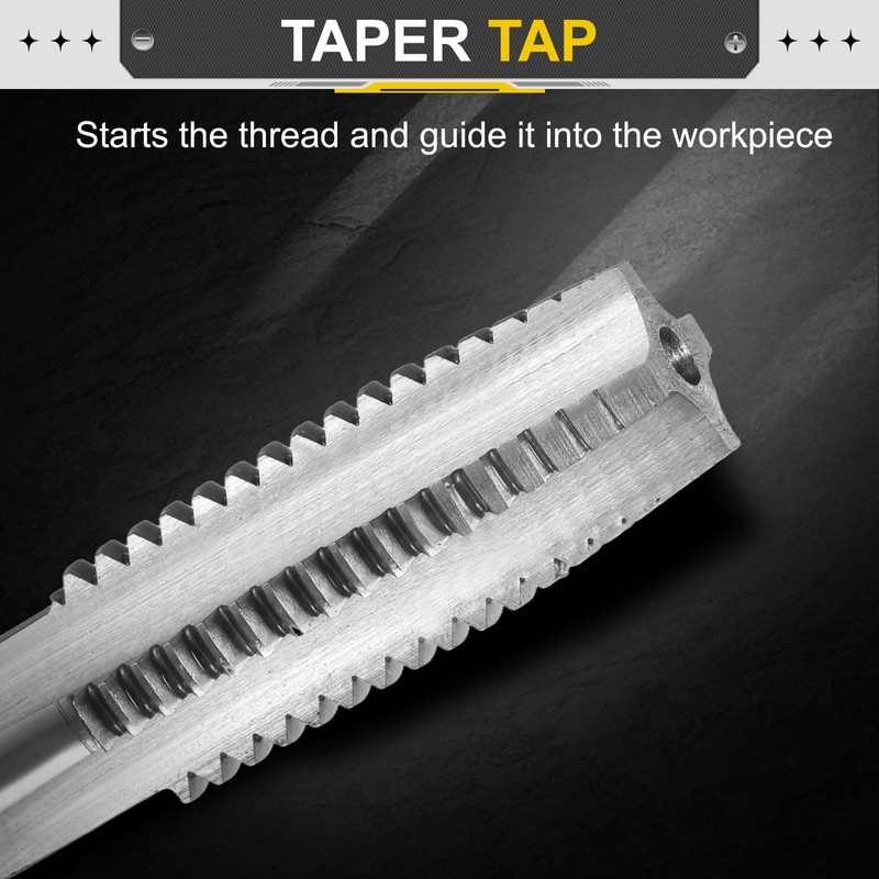 - Taper Style Tap: Taper tap starts the thread and guide it into the workpiece. The straight groove design of the hand tap can quickly remove chips downward, reduce operating resistance, and achieve efficient processing. The thread is clear and burr-free, which can achieve precise tapping.