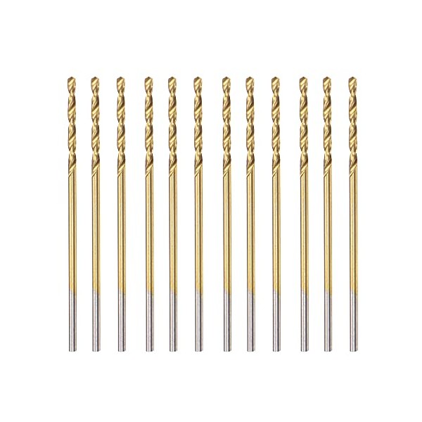 uxcell High Speed Steel Straight Shank Twist Drill Bit Fully Ground Titanium Coated 1mm Drill Diameter 34mm Total Length 12mm Drill Bit Length 12 Pcs