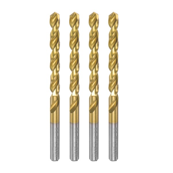 uxcell High Speed Steel Straight Shank Twist Drill Bit Fully Ground Titanium Coated 6.8mm Drill Diameter 34mm Total Length 12mm Drill Bit Length 4 Pcs