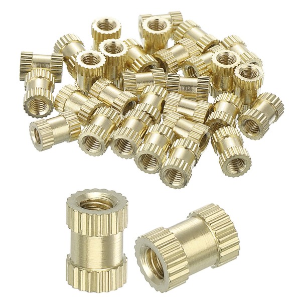 uxcell Knurled Insert Nuts, 30Pcs M3 x 7mm(L) x 5mm(OD) Thread Printing Brass Nuts Female Threaded Inserts Brass Heat Set Insert Embedment Nuts