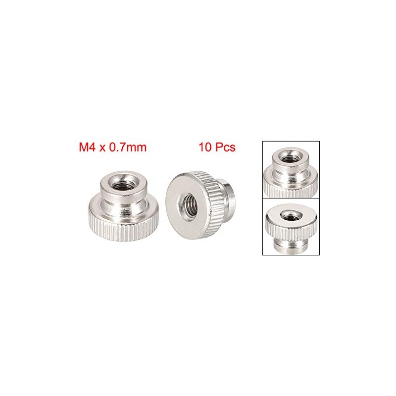 uxcell Knurled Nut Thumb Nut M4 x 0.03 inch (3.8 mm) Thickness 0.15 inch (3.8 mm) Metal Nickel Plated 0.5 x 0.3 inch (12 x 8 mm), Pack of 10