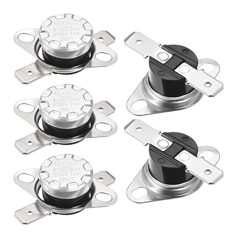 - Type: KSD301 120 degrees Celsius Thermal Control Switch 110V/120V/250V 10A NC (Normal Close), 6.3mm pin