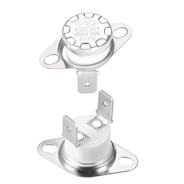 uxcell KSD301 Thermostat 210°C/410°F 10A Normally Closed N.C Adjust Snap Disc Temperature Switch for Microwaves,Oven,Coffee Maker 2pcs,Ceramic Material