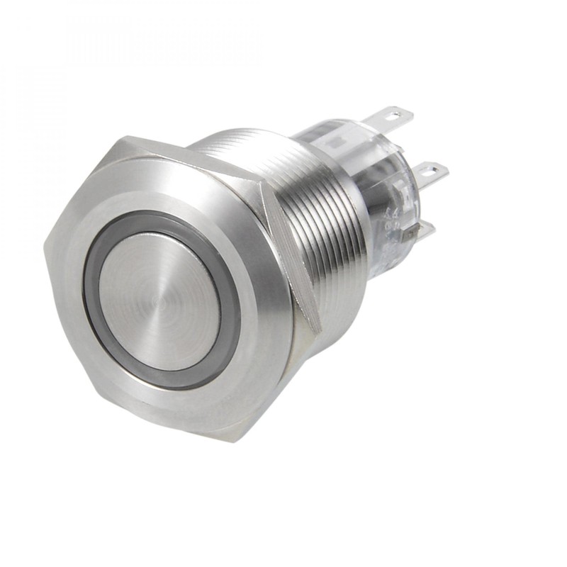 This metal push button switch is suitable for 22mm diameter mounting hole.