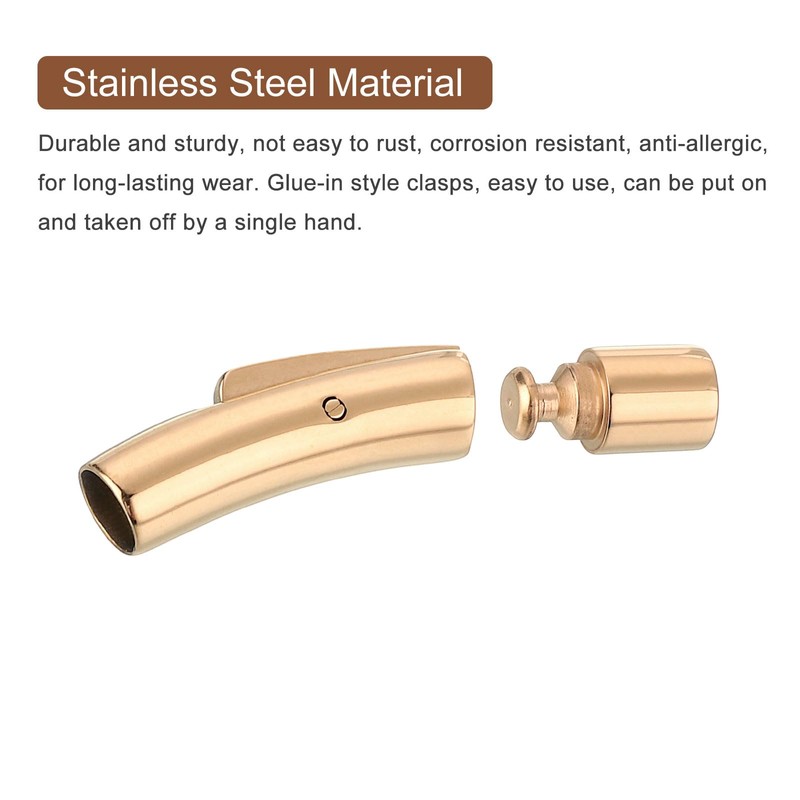 uxcell Leather Cord End Clasp, 2Pcs 4mm Hole Column Clasps Connectors, Stainless Steel Clasps Closures Leather Cord Buckle for Making DIY Supplies Crafts, Rose Gold (8mm)