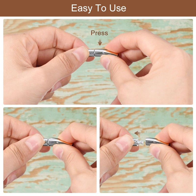 - [Easy To Use] These steel clasps are a convenient substitution for other types of clasps. Apply glue to the leather rope port and then insert the end of the cord completely through to the end of the cap.