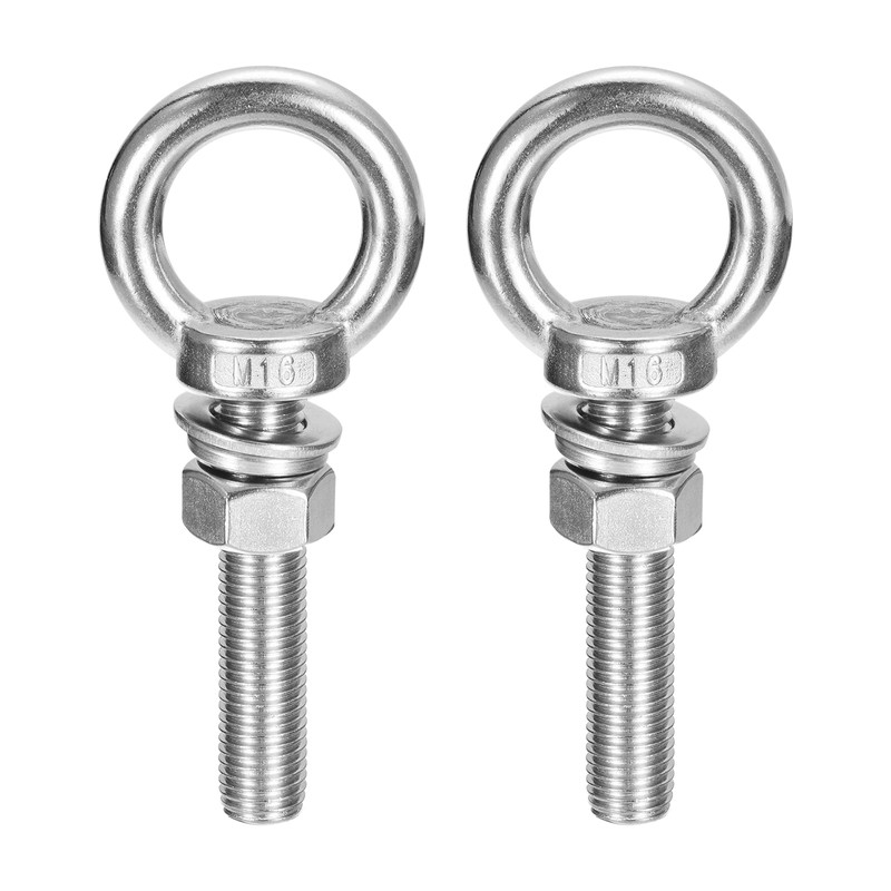 • Thread Size: M16 x 80 mm / M16 x 3.15"(D*L); Pitch: 2mm; Ring Inside Diameter: 35mm / 1.38"; Package Includes: 2pcs x Lifting Eye Bolt, 2pcs x Hex Nut, 2pcs x Lock Washer, 2pcs x Flat Washer