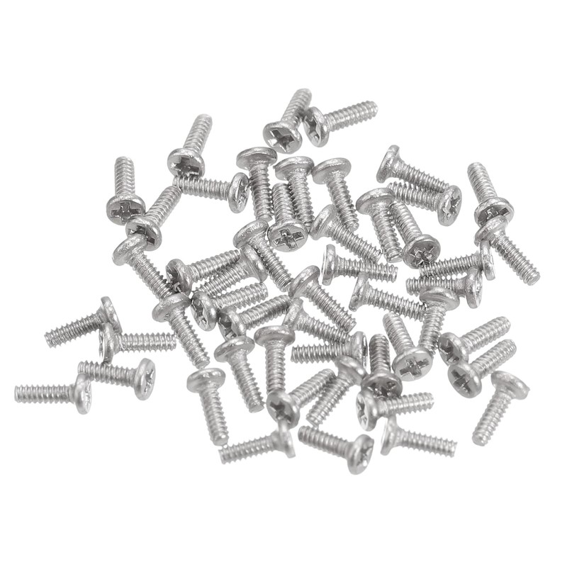 - [Flat Round Head Screw] - Screw Groove Type: Phillips; Finish: Pickling Passivation; Thread Pitch: 0.25mm; Thread Size: M1x3mm/M1x0.12"; Head Diameter: 2mm/0.08"; Head Height: 0.3mm/0.01"; Package Content: 50 Pcs x Machine Screws. Please confirm the thread size before purchasing.