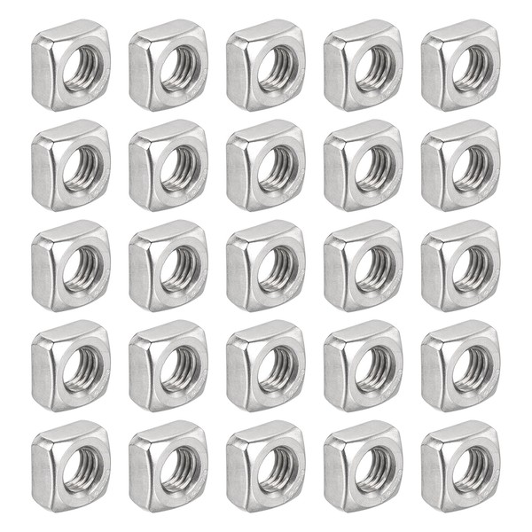 uxcell M8-1.25x6.5 Square Nuts, 304 Stainless Steel Coarse Thread Square Nuts Fasteners for Home Repairs and Professional Engineering, Silver, 100pcs