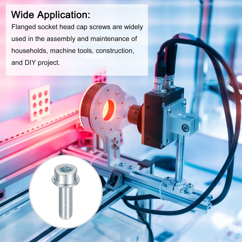 • Material: Flanged socket head cap screws are made of 8.8 grade carbon steel, zinc plated finish, high strength, abrasion resistance, rust and corrosion resistance
