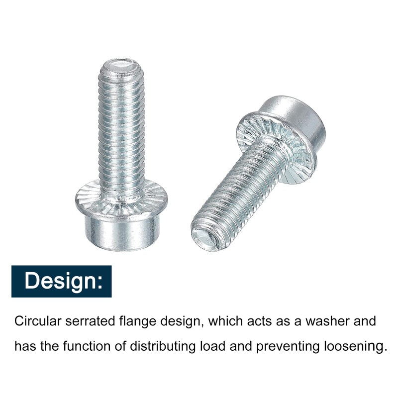 3. Design: Flanged socket cap head is a high profile round that provides high strength. There is a circular serrated flange under the head of the flange bolt that acts as a gasket and distributes the load to prevent loosening