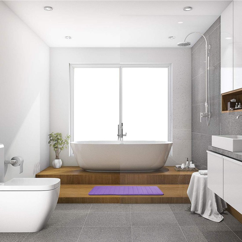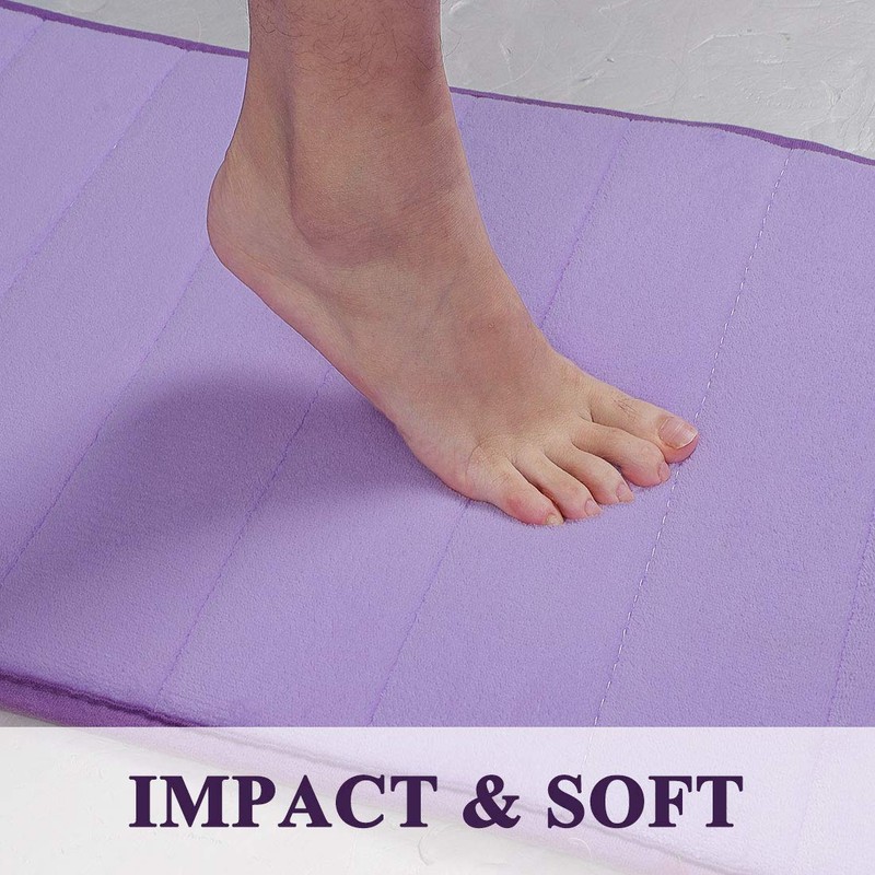 uxcell Memory Foam Non-Slip Bath Mat Soft Bathroom Floor Rugs Washable and Quick Drying Absorbent Rubber Back Runner Area Rug for Kitchen and Bathroom Light Purple 15.7" x 47.2"