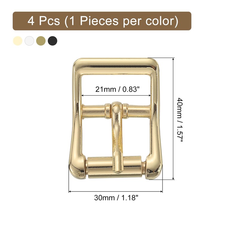 - [Center Bar Buckles] - Total Size: 40mm x 30mm/1.57" x 1.18"(L*W); Fit Belt Width: 21mm/0.83"; Color: Gold Tone; Bronze Tone; Black; Silver Tone; Package Included: 4Pcs x Metal Roller Buckles.