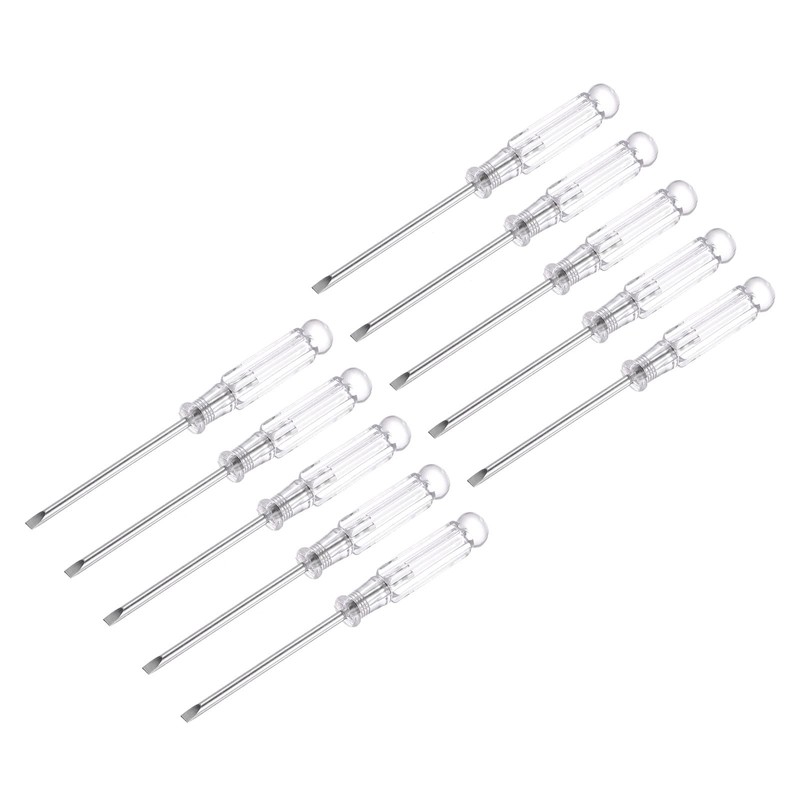uxcell Mini Slotted Screwdriver, 3.0mm Flat Head with Clear Handle for Small Appliances, 10 Pcs