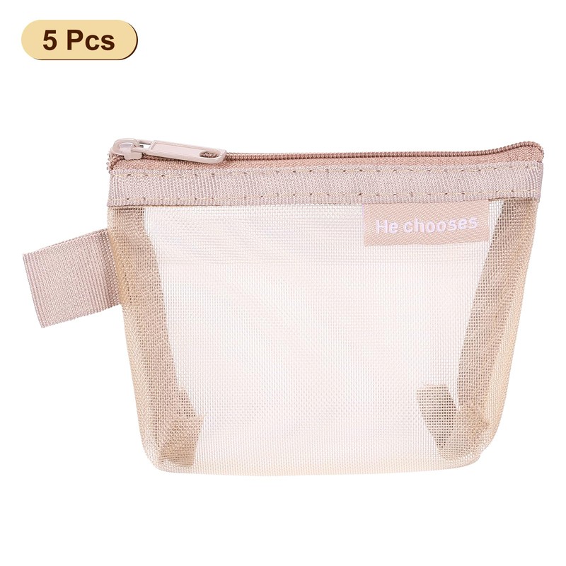 uxcell Mini Zipper Mesh Bag 3" x 5", 5 Pcs Nylon Small Makeup Zipper Mesh Pouch Cosmetic Case Mesh Storage Bags for Earphone, Credit Card, Pink