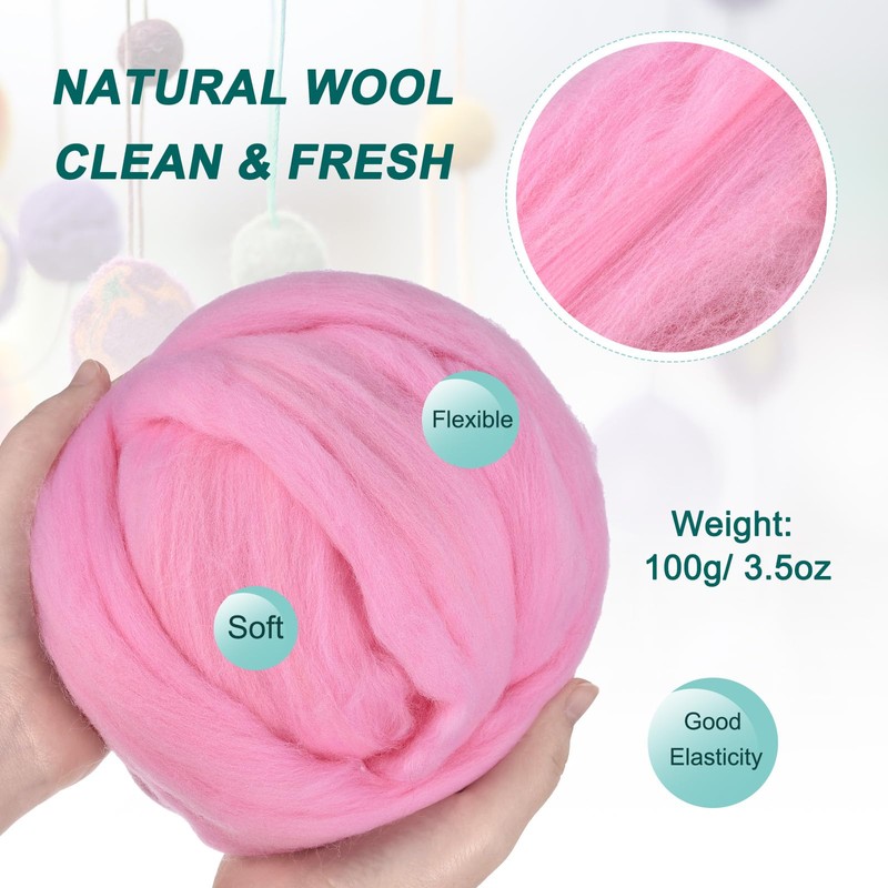 uxcell Needle Felting Wool, 3.5 Oz Nature Fibre Wool Yarn Roving for Wet Felting, Handcrafts, DIY Materials (Light Water Pink)