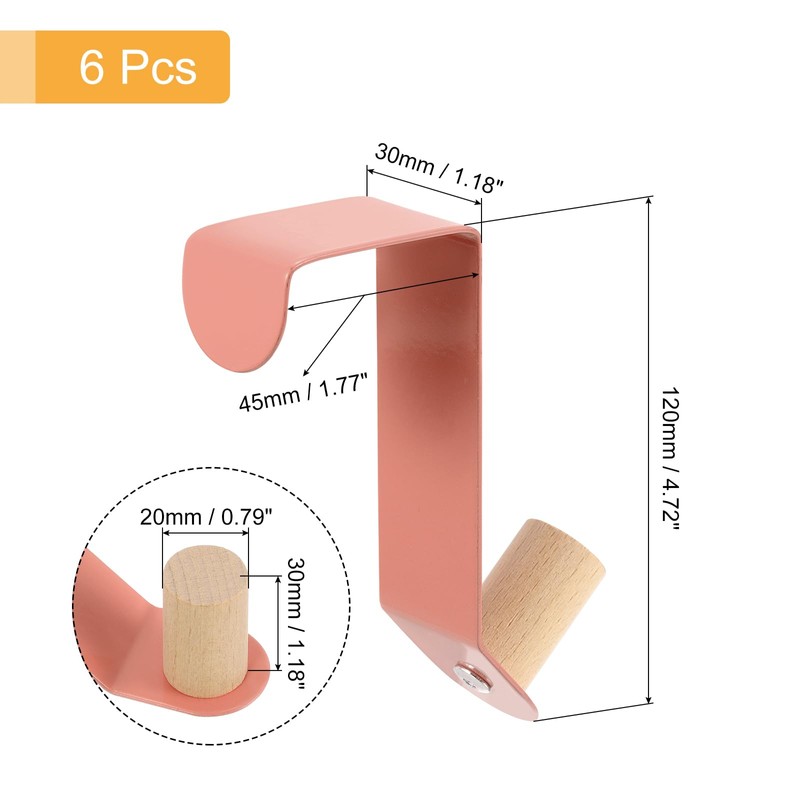 uxcell Over The Door Hooks,6pcs - Carbon Steel Paint Door Hanger Hook, Single Hooks for Hanging Clothes, Hats, Towels (Pink)