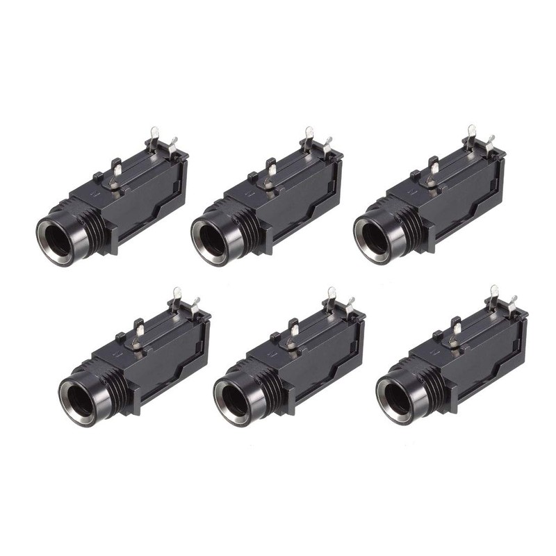 uxcell PCB Mount 6.35mm 3 Pin Socket Headphone Stereo Jack Audio Video Connector Black 6Pcs