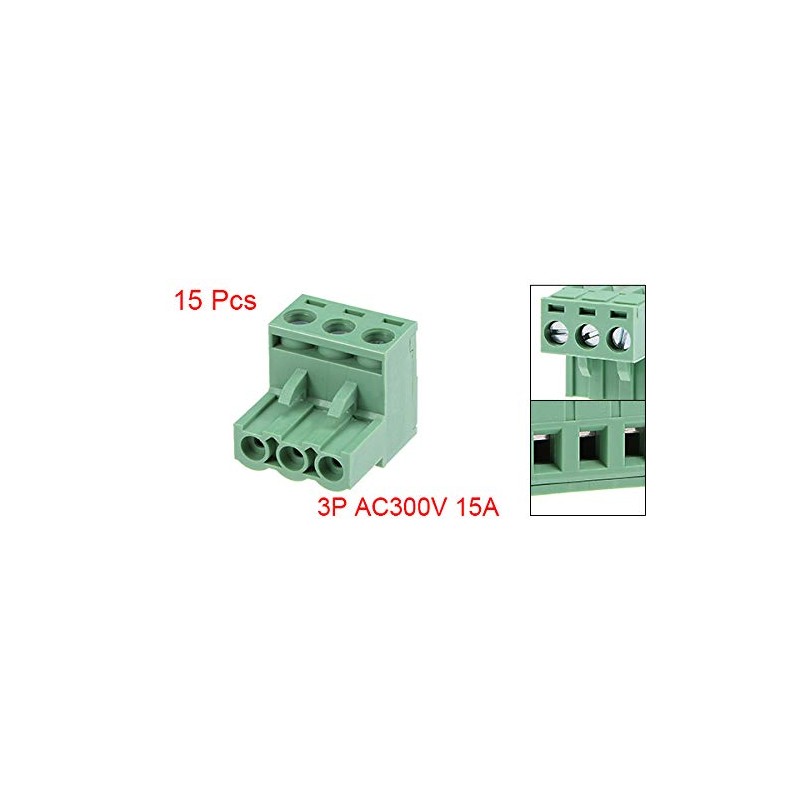 uxcell PCB Terminal Block Connector AC300V 15A Pitch 5.08mm 3P Flat Angle Needle Seat Plug in Pack of 15