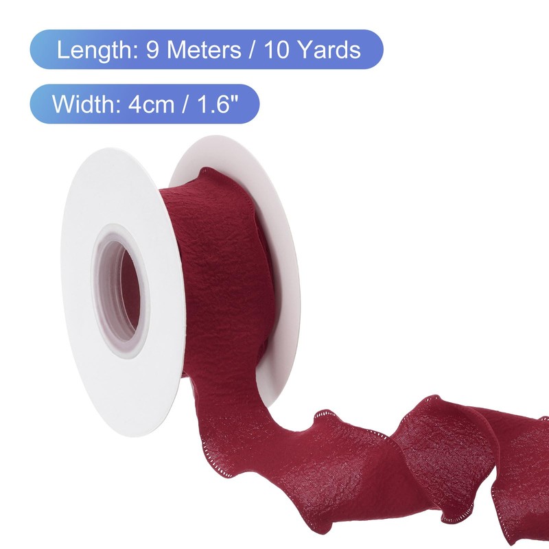 uxcell Plaid Ribbon, 1.6" Wide 10 Yards Buffalo Checked Gingham Plaid Wrinkled Pleated Ribbon for Gift DIY Bows Home Party Wrapping Wreath Crafts Decoration Polyester, Pleated Wine Red