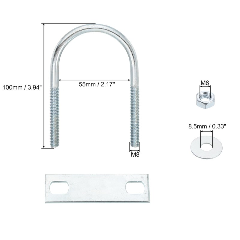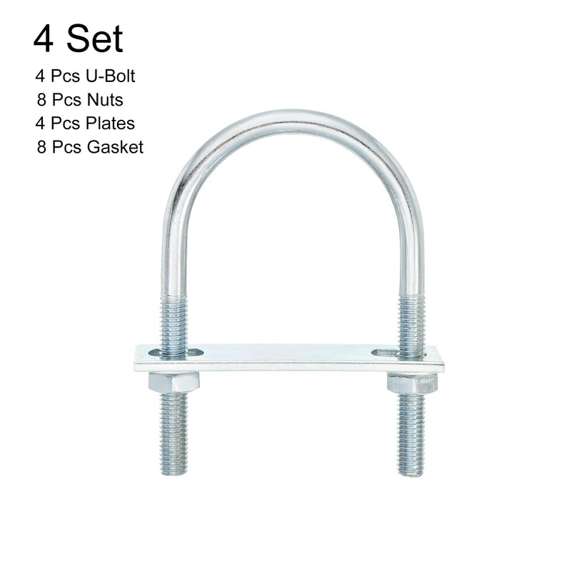 - Hex Nut Thread Dia.: M8; Frame Plate Dia.: 8.5mm / 0.33"; Package Content: 4 x U-Bolt, 8 x Nuts, 4 x Plates, 8 x Gasket.