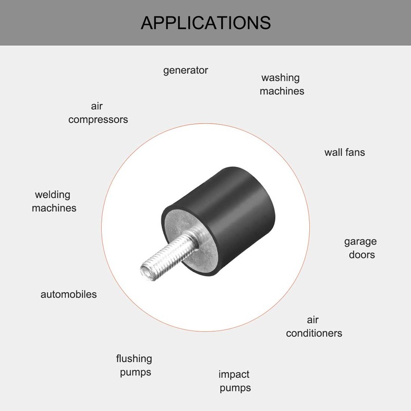5. Rubber vibration isolator is mainly used for dampening elements such as fitness equipment, air conditioners, bicycles, air compressors, engineers, gasoline engines, water pumps, welding machines, etc.