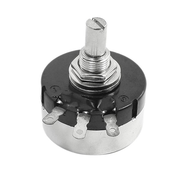 3 Terminals, Single Turn, Carbon Rotary Taper Potentiometer.Main used to control electrical devices such as volume controls on equipment.Knurled shaft with split design for push-on knob.