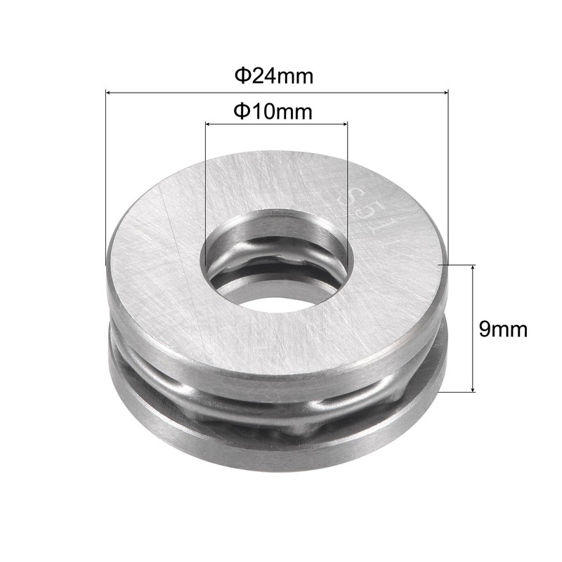 uxcell S51100 Stainless Steel Thrust Ball Bearings with Washers 10mm Bore 24mm Outer Diameter 9mm Thickness 2pcs