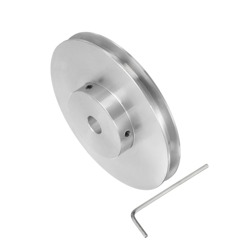 uxcell Single Groove Pulley 10mm Fixed Bore 100mm Outer Diameter Aluminum Alloy with Hex Wrench for Drilling Machine 6mm PU Round Belt