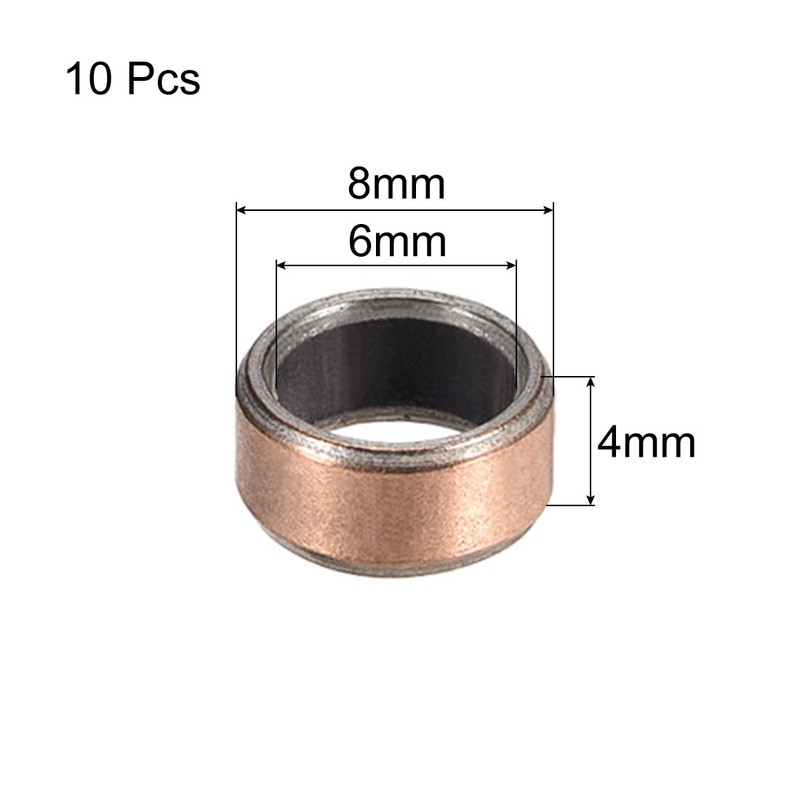 uxcell Sleeve Plain Bearings, Inner Diameter: 0.2 inches (6 mm), Outer Diameter: 0.3 inches (8 mm), Length: 0.2 inches (4 mm), Oilless Bushing, Porous Bronze Sintered Carbon Steel Base, Pack of 10