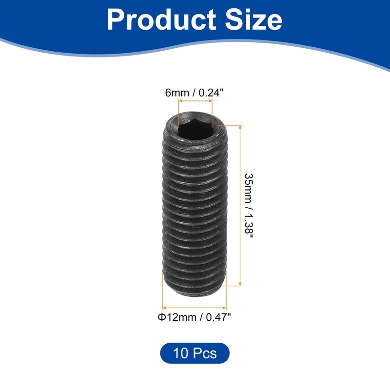 uxcell Socket Set Screws,10Pcs M12x35mm Metric -Carbon Steel Hex Socket Set Headless Cup Point Grub Screws, for Repairing Compact Instruments, Machinery and Equipment (Black)