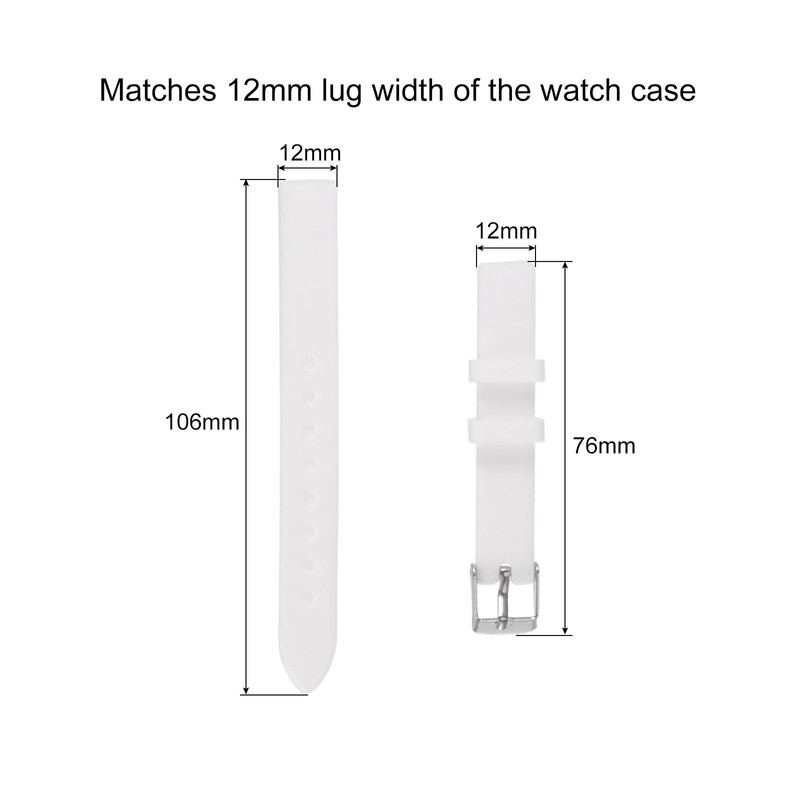 - [ Size Guide ] - This watch replacement band fits 12mm width watch lugs. The long belt length is 106mm, and the short belt length is 76mm.