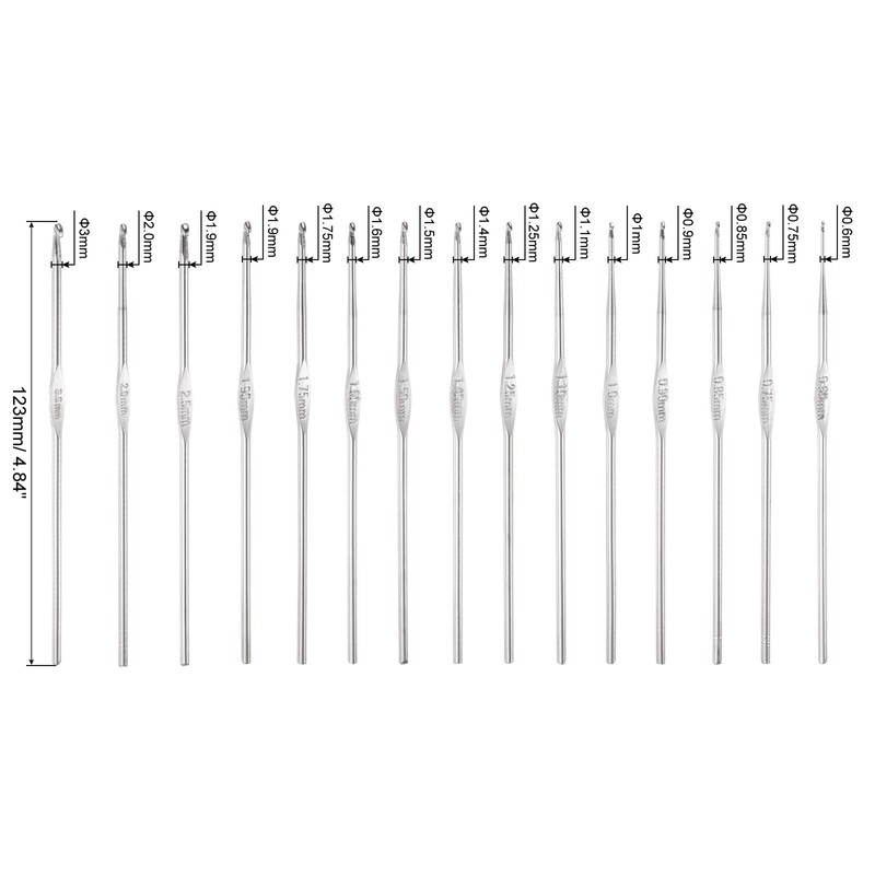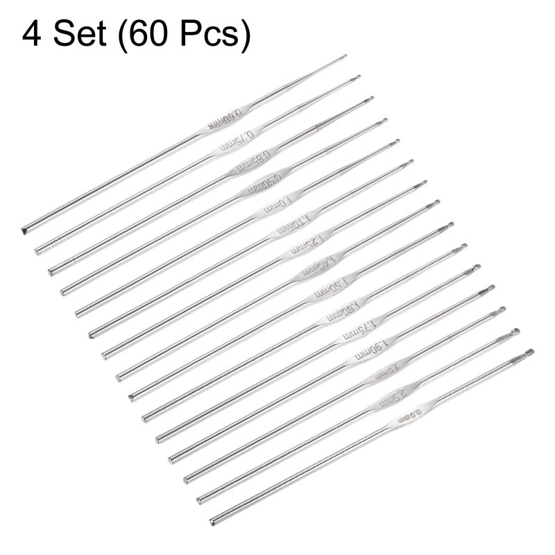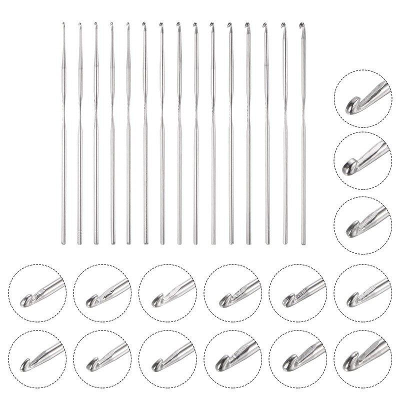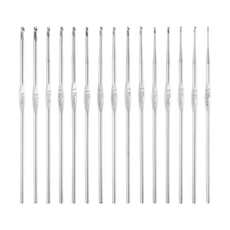 uxcell Stainless Steel Crochet Hook Set 0.6mm-3mm Knitting Needles for DIY Craft Yarn 30Pcs