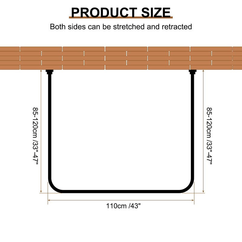 - Size: The U-shaped adjustable rod rack length on both sides: 85-120cm/33"x47", Middle width: 110cm/43". Comes with 12pcs steel ring hooks and 12pcs resin ring hooks.
