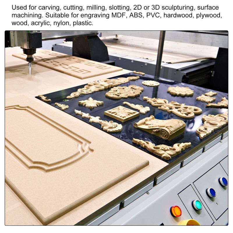 Can be used for engraving, cutting, milling machines, slots, 2D or 3D carving, surface processing, etc. Suitable for carving MDF, ABS, PVC, wood, plywood, hardwood, double color board, acrylic, nylon, plastic, etc.