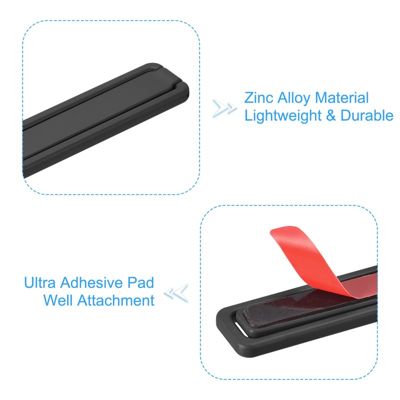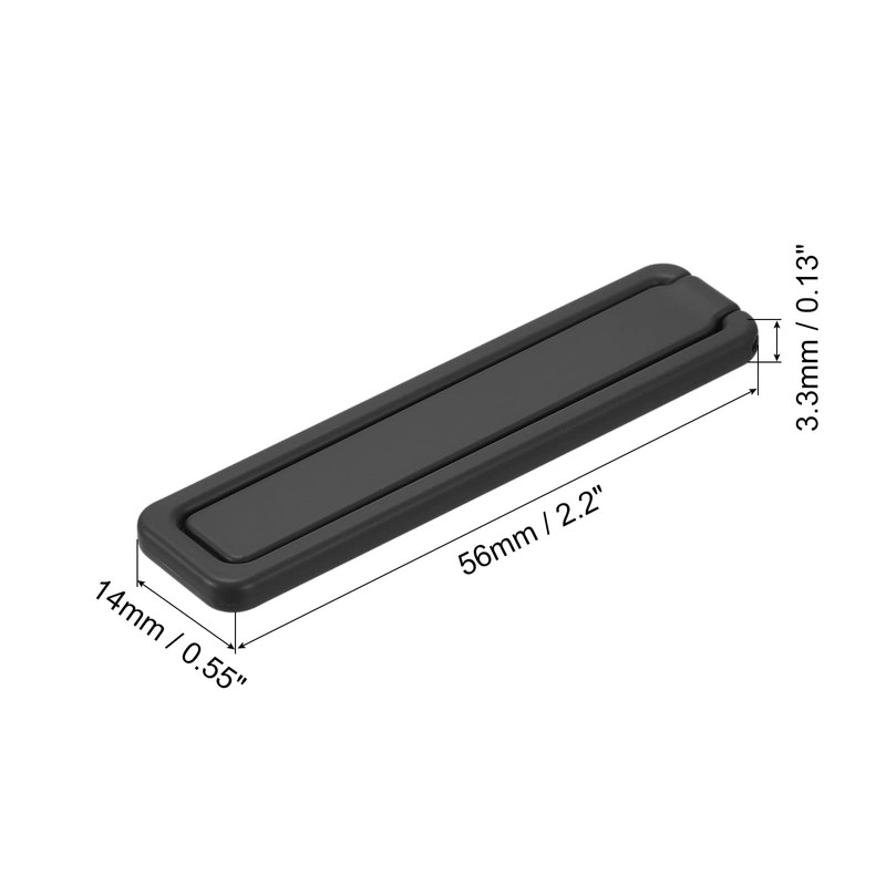- ULTRA THIN PHONE HOLDER - This cell phone kickstand is in 56x14x3.3mm/ 2.2x0.55x0.13inch (L*W*Thick). Made of zinc alloy with a painted surface, it is lightweight and durable. It is small in size, easy to carry and store, and does not take up space
