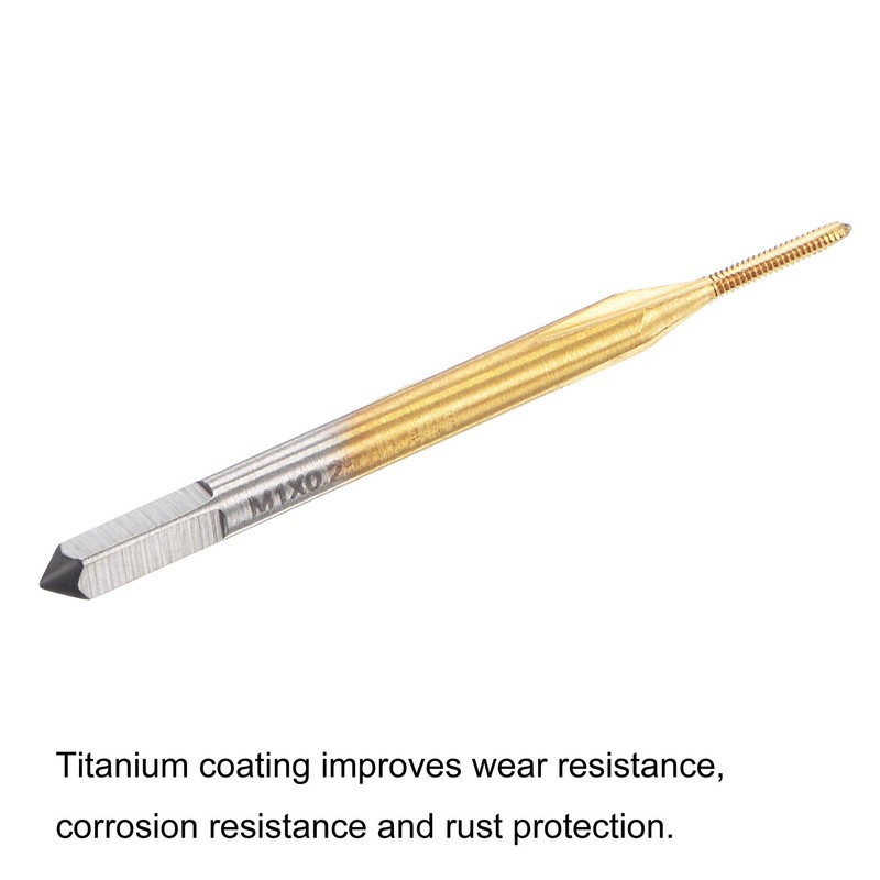 - Tap Size: M1 x 0.25 metric thread, H2 thread tolerance grade. Straight flute design, downward chip removal, fast tapping with accuracy. Titanium coating can improve wear resistance, corrosion resistance and rust protection.
