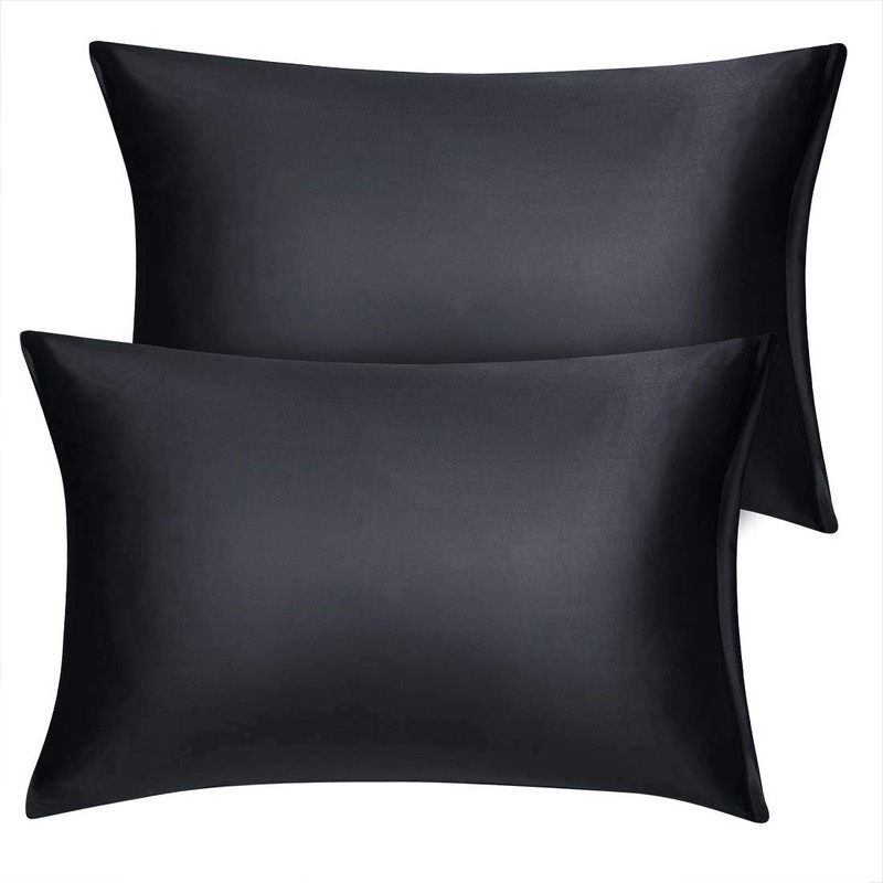uxcell Travel Satin Pillowcase with Zipper, Super Soft and Luxury, Silky Pillow Cases Covers Set of 2, 14"x20", Black