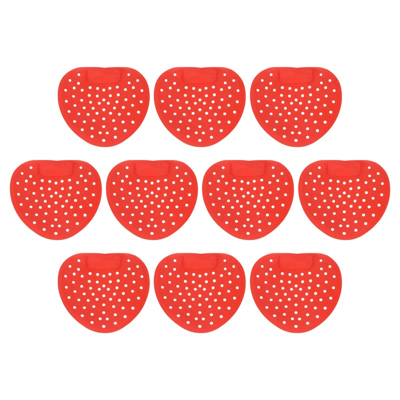 - [Last for 30 days] The package contains 10 packs of urinal mats for the men's bathroom. Size: 185 x 165mm / 7.28" x 6.5", Material: Plastic, Color: Red, It is sized to fit most urinals in the United States.