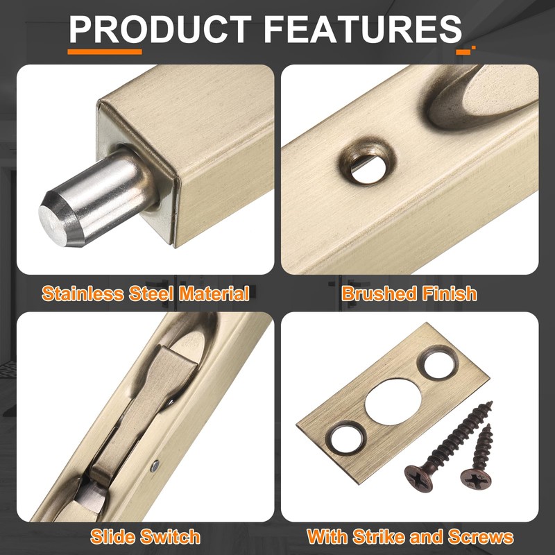 - [EASY TO USE] - Concealed slide bolt door lock, closed side panels, spring tension lever action.