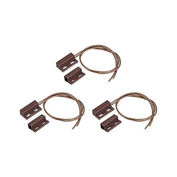 uxcell Wired Door Contact Window Sensor NC Surface Mount Magnetic Reed Switch Brown 3 Pcs