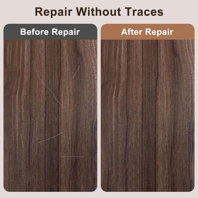 - Application: This wood floor scratch repair kit is suitable for floors, furniture, moldings, and other wooden items, perfect for wooden furniture, floors, trim, cabinets, tables, doors, frames, and more