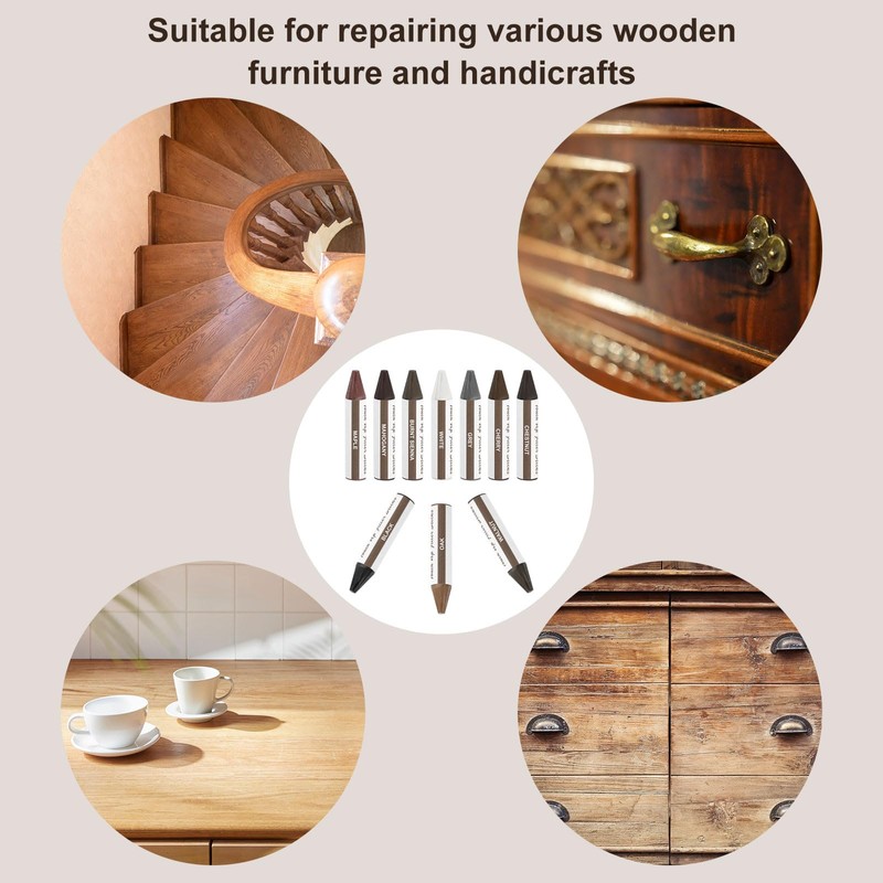Easy to Use: These fill sticks quickly and easily eliminate scratches. Clean the area to be filled first and select the color that is closest to the item to be repaired, just rub the wax stick in damaged areas to fill the scratches. You can use a lighter to heat the crayon for better results if it is not easy to paint