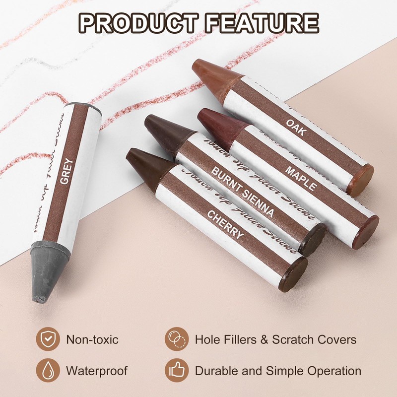 - [Furniture Crayons] The diameter of the furniture markers touch up is 1.2cm/0.47", and the length is 6.2cm/2.44", you will receive 5 pcs of wood filler sticks. Please select a similar and proper color according to your furniture tone before purchasing